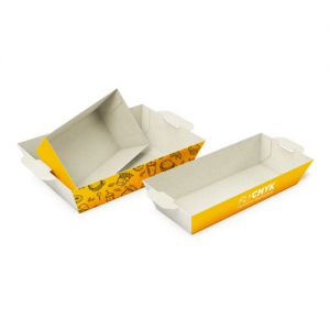 Op zoek naar een manier om jouw snacks op een professionele en aantrekkelijke manier te verpakken? Laat dan kartonnen snackbakjes bedrukken! Onze snackbakjes zijn geschikt als take-away verpakking voor hamburgers, friet en verschillende snacks en zijn verkrijgbaar in diverse soorten en formaten. Bovendien zijn ze 100% recyclebaar, full color bedrukt en voorzien van een beschermende coating.
