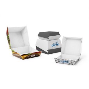 Verpak jouw smaakvolle burger in een strak ontworpen bakje. Zo maak je de verpakking bijna aantrekkelijker dan de inhoud. Onze verpakking is in twee formaten (80 x 92 x 42 mm en 115 x 108 x 80 mm) beschikbaar en kan enkelzijdig full colour bedrukt worden.