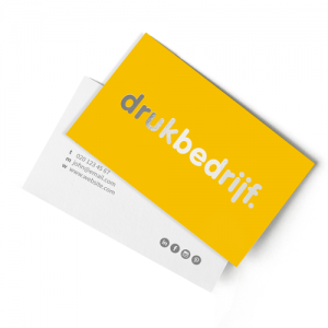 Kies je voor “UV-lak”, dan plaatsen wij een hoogglans laklaag over jouw office visitekaartjes. Deze laklaag kom je vaak tegen bij promotionele kaartjes en is een van de meest opvallende afwerkingen bij visitekaartjes. Een andere optie voor UV-lak is om deze op specifieke onderdelen van het ontwerp te plaatsen. Alleen deze delen worden dan voorzien van een hoogglans laklaag.