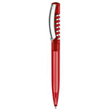De New Spring pen is een bijzondere pen die opvalt. Het klikmechanisme werkt met een veer die te zien is op de bovenzijde van de pen. Wanneer het klikmechanisme ingedrukt wordt zie je de veer op en neer gaan. De pen is verkrijgbaar met een kunsstof afwerking. Alle pennen zijn doorzichtig, behalve zwart en wit.